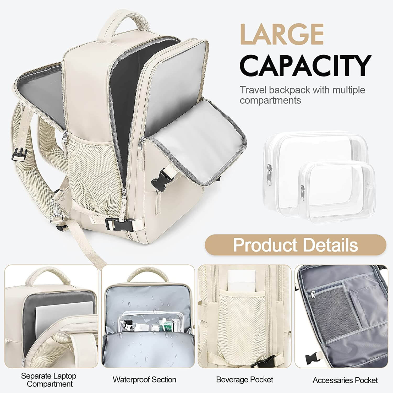 • 【Flight-approved Travel Backpack】Size:42*29*20cm(16.5*11.4*7.8 inches). Travel backpack is meticulously crafted to conform to airline standards. This feature saves time and eliminates the hassle of waiting in long lines for baggage check-in. Its compact design also allows for easy placement in luggage rack or under seats. Additionally, the two-way zippers provide added security.